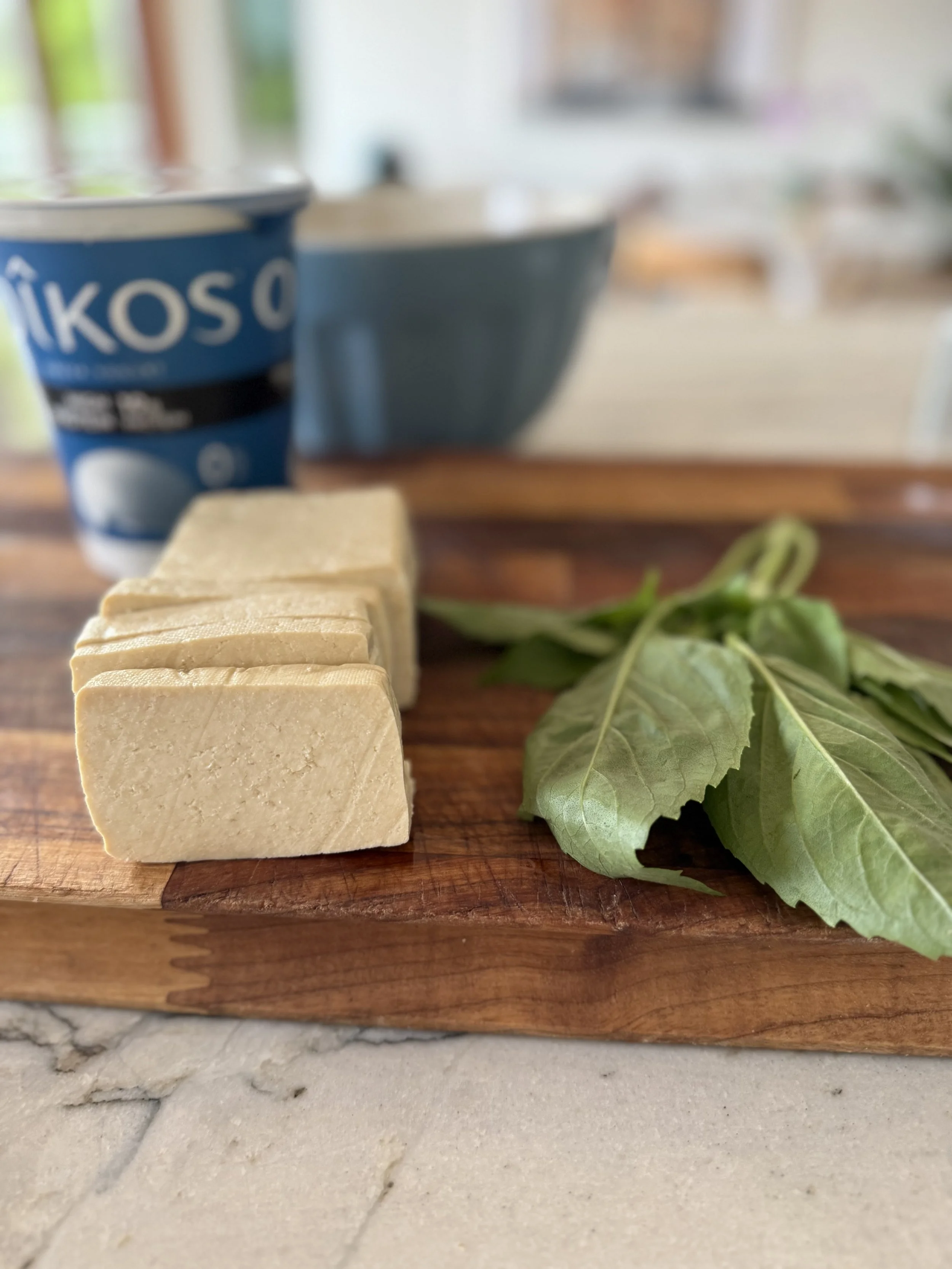 Let cool slightly, then transfer everything from the pan to a blender. Add either tofu + veggie stock (vegan) or cottage cheese + bone broth (protein-forward). Blend until creamy.